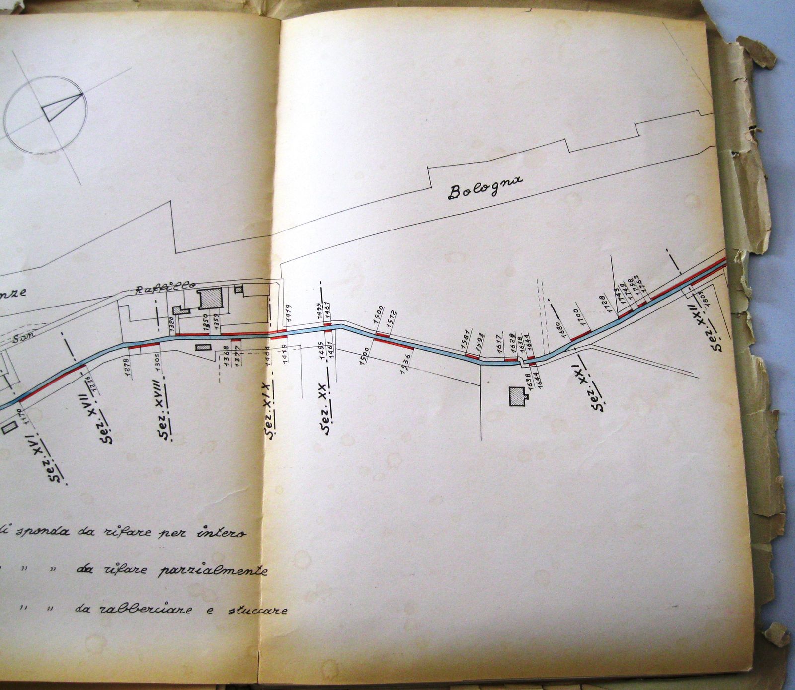 Archivio Storico del Comune di Bologna, Tit. XII, rubr. 1, prot. 306/1948 e 37646/1954 (ripristino del primo tratto del canale di Savena fino a via Parisio e della casa del custode)